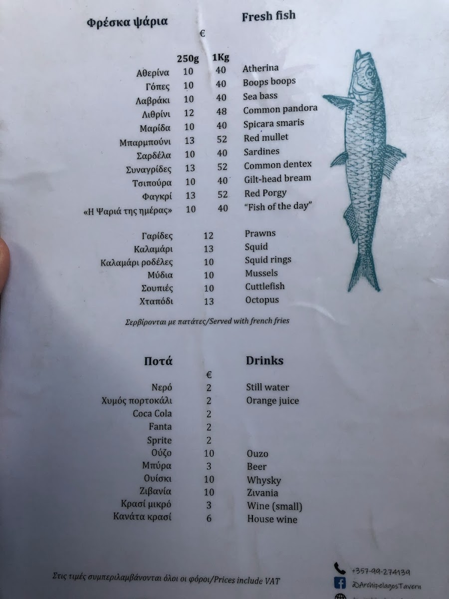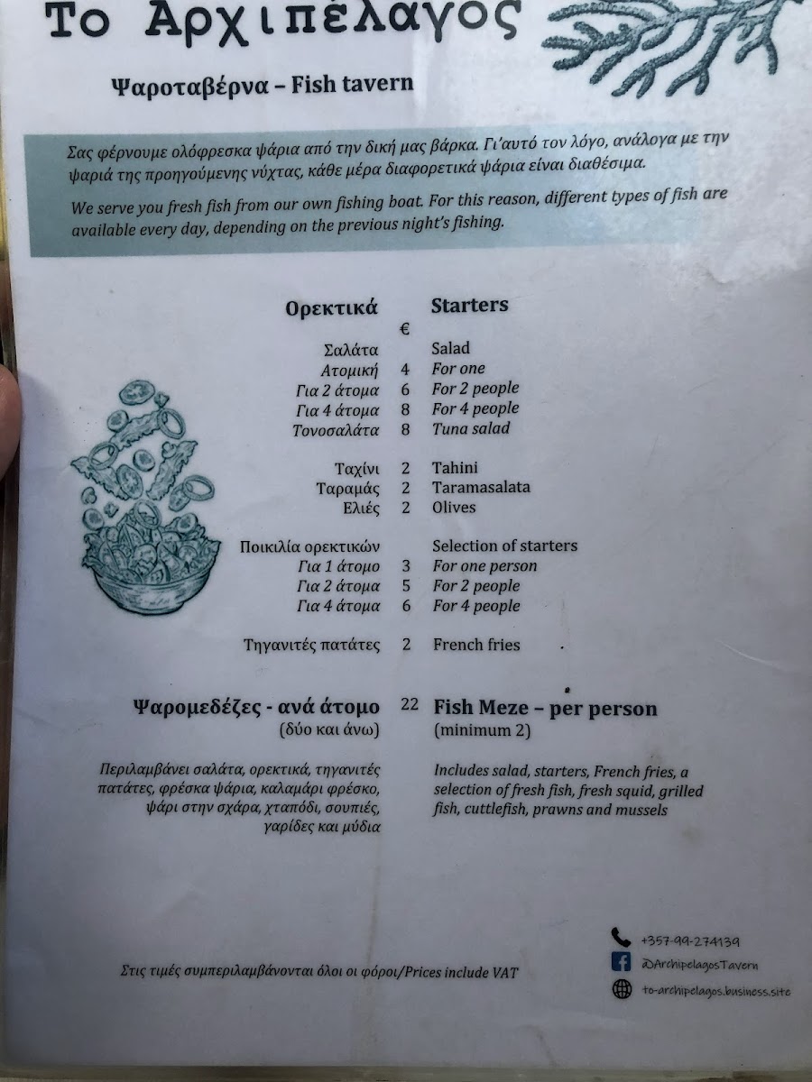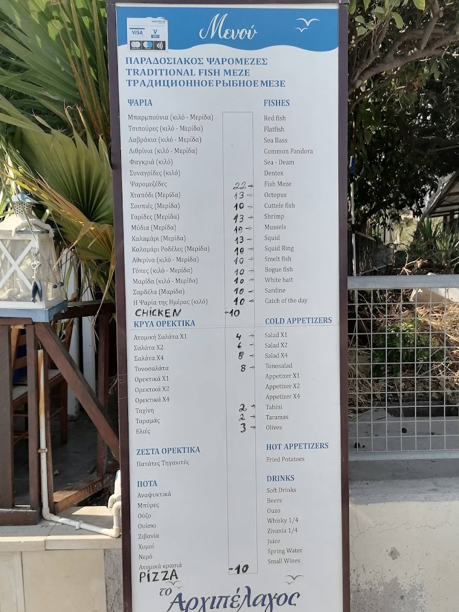 Overall, the menu at To Archipelagos - Fish Tavern is a well-curated selection of traditional Cypriot seafood dishes, expertly prepared and served with a warm, welcoming touch. Whether you're dining alone or with a group, there's a perfect dish for every taste, making it a must-visit for anyone craving fresh, high-quality seafood.
